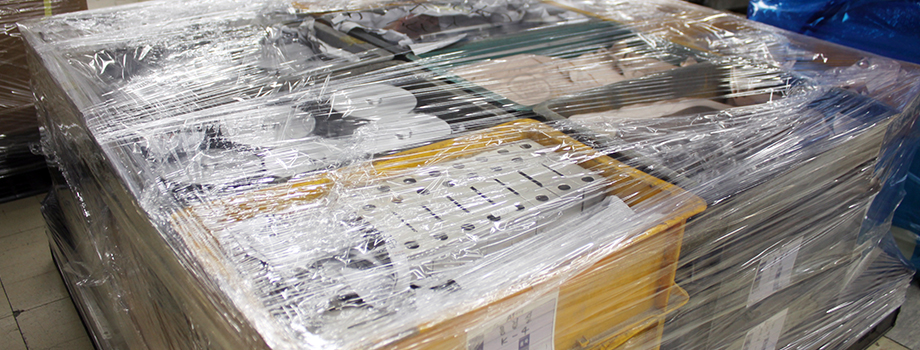 부자재 파레트화 작업 및 랩핑 포장작업 진행