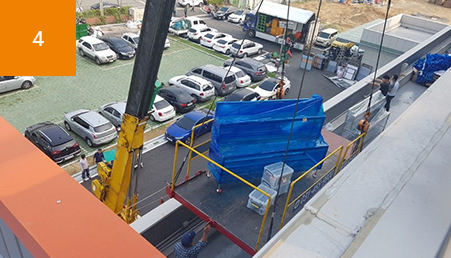 공장내 환경에 맞추어 중량물 장비를 이용하여 실내반입작업 진행